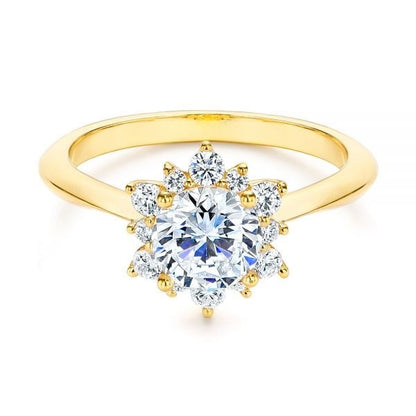Celebrate forever with brilliance that rivals the stars. The Starburst Cluster Halo Moissanite Engagement Ring is a stunning display of sparkle and elegance—crafted for those who want their love to shine as brightly as their commitment.