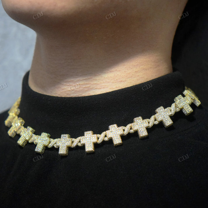 Sterling Silver 15MM Cross Infinity Link Iced Out Diamond Chain