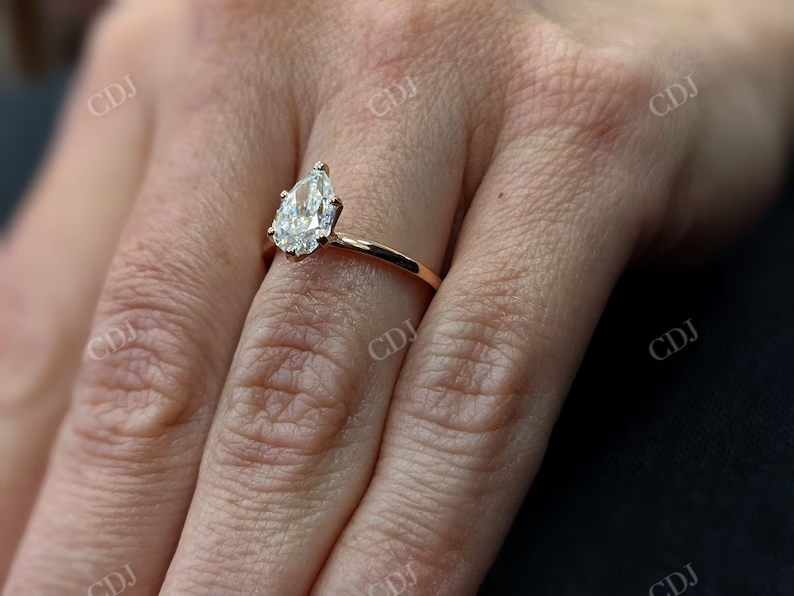• Tear Drop Solitaire Moissanite: Pear-shaped lab-grown moissanite with exceptional brilliance and fire, ethically created for conscious buyers.