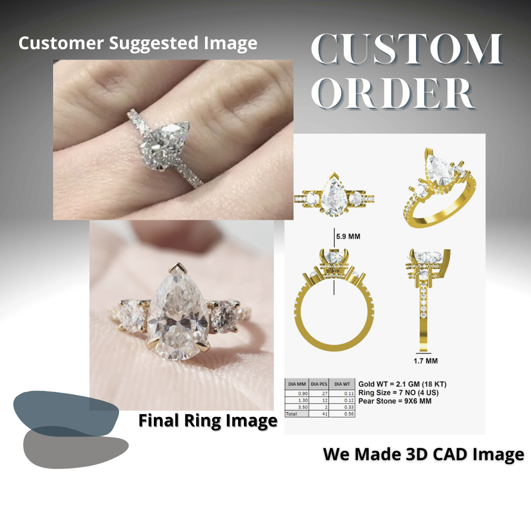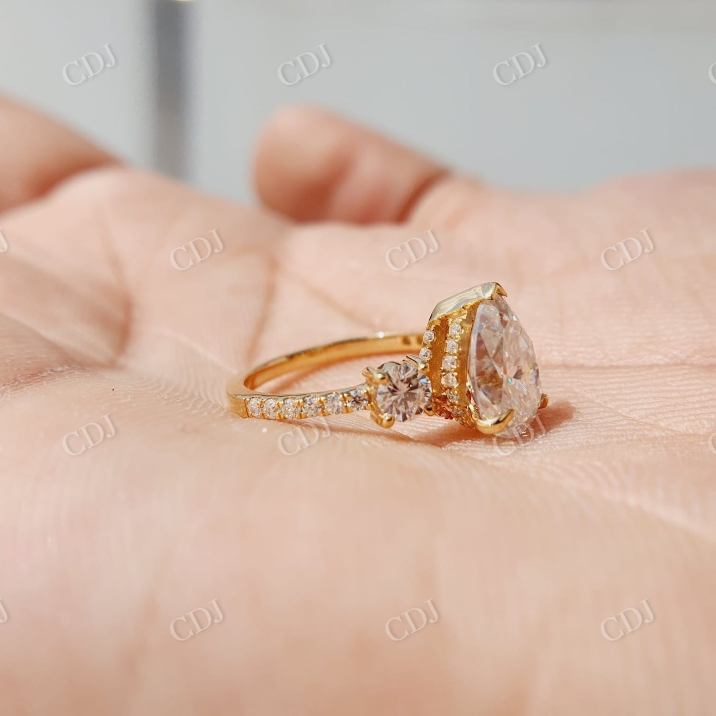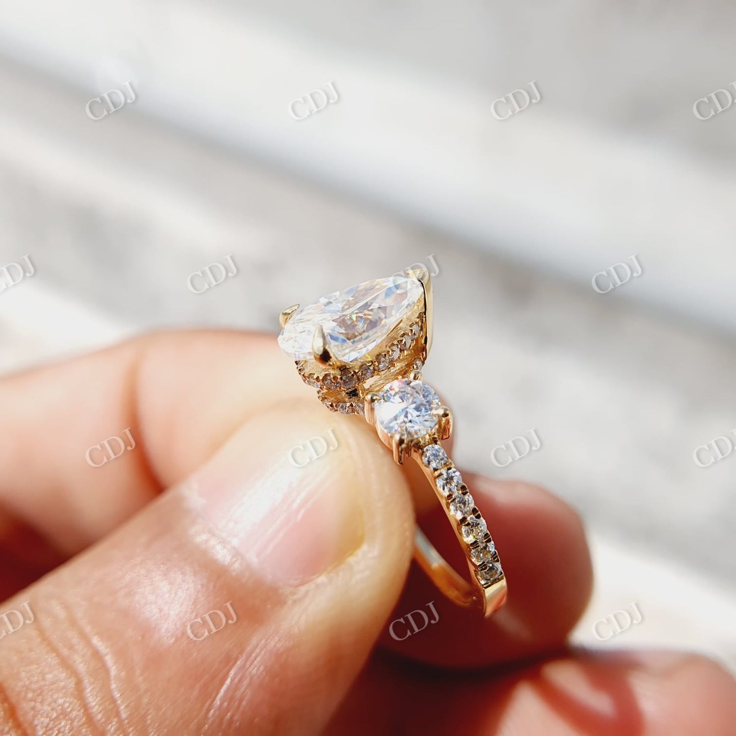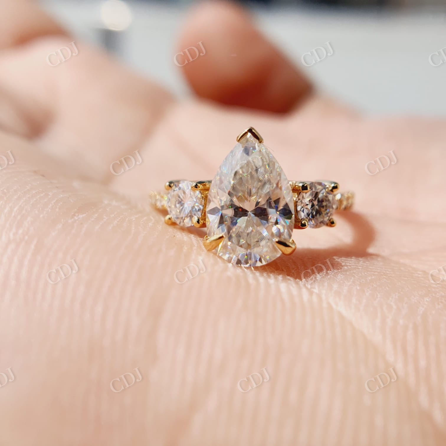 Make your special moment unforgettable with the brilliant sparkle and elegant design of the Three Stone Pear Cut and Round Cut Moissanite Engagement Ring.