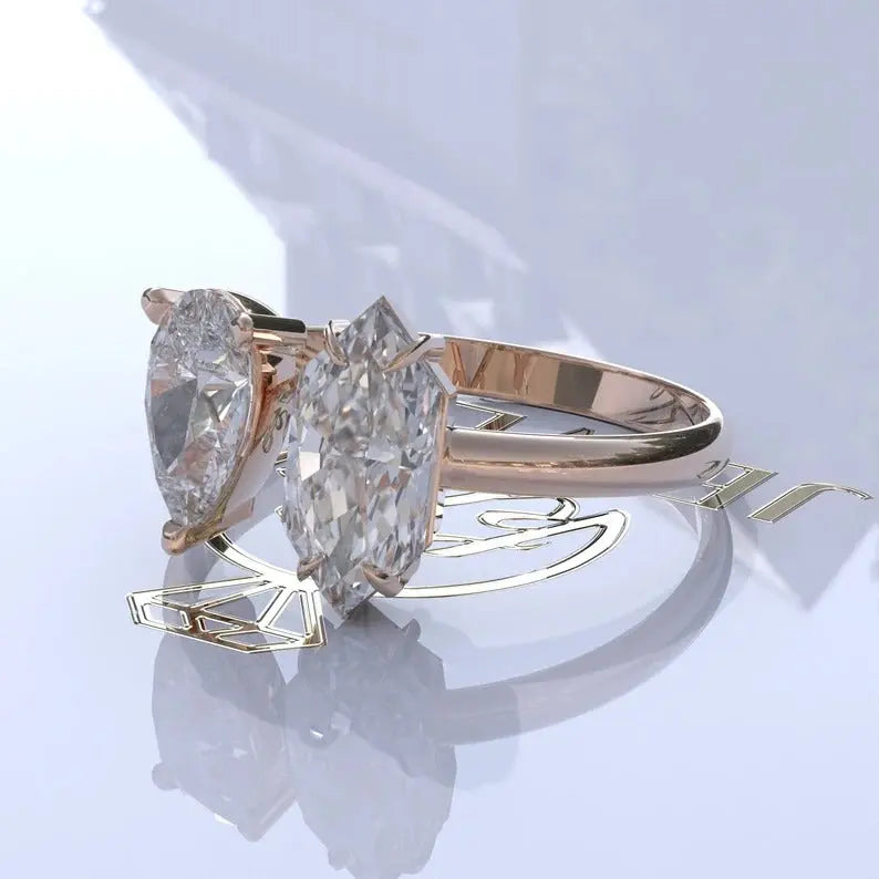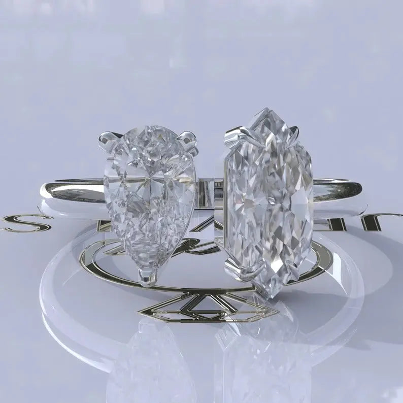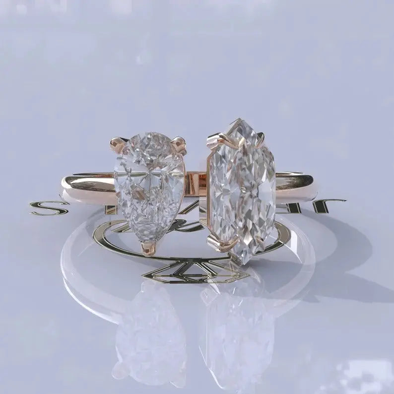 Celebrate your unique love story with the Toi Et Moi Colorless Moissanite Ring — a classic symbol of two souls intertwined in perfect harmony. Featuring two dazzling colorless moissanite stones set side by side, this ring captures the essence of unity and individuality with elegant simplicity.