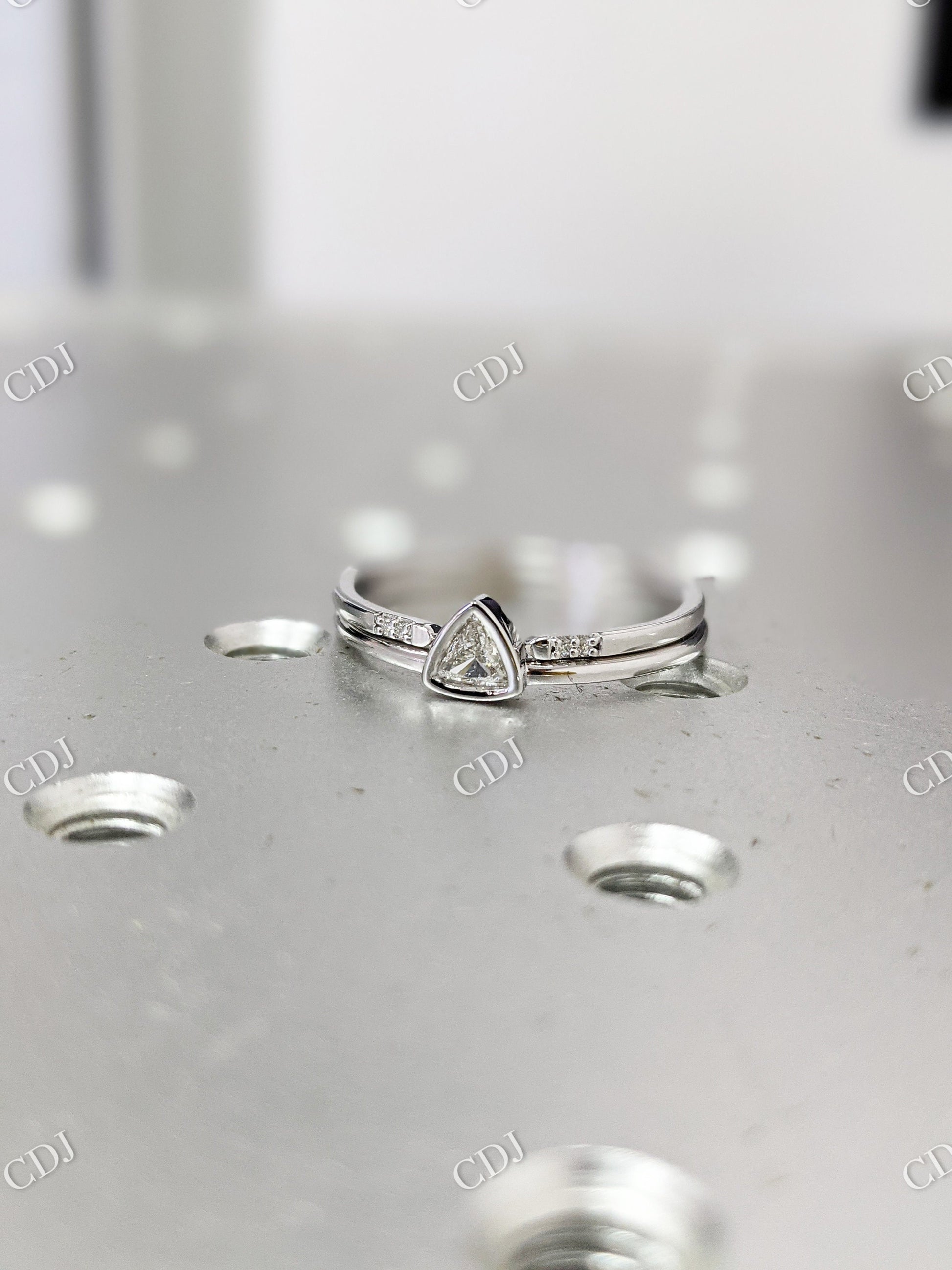 Elegant Simplicity: Trillion Cut Moissanite Bezel Set Minimalist Stackable Ring Set
