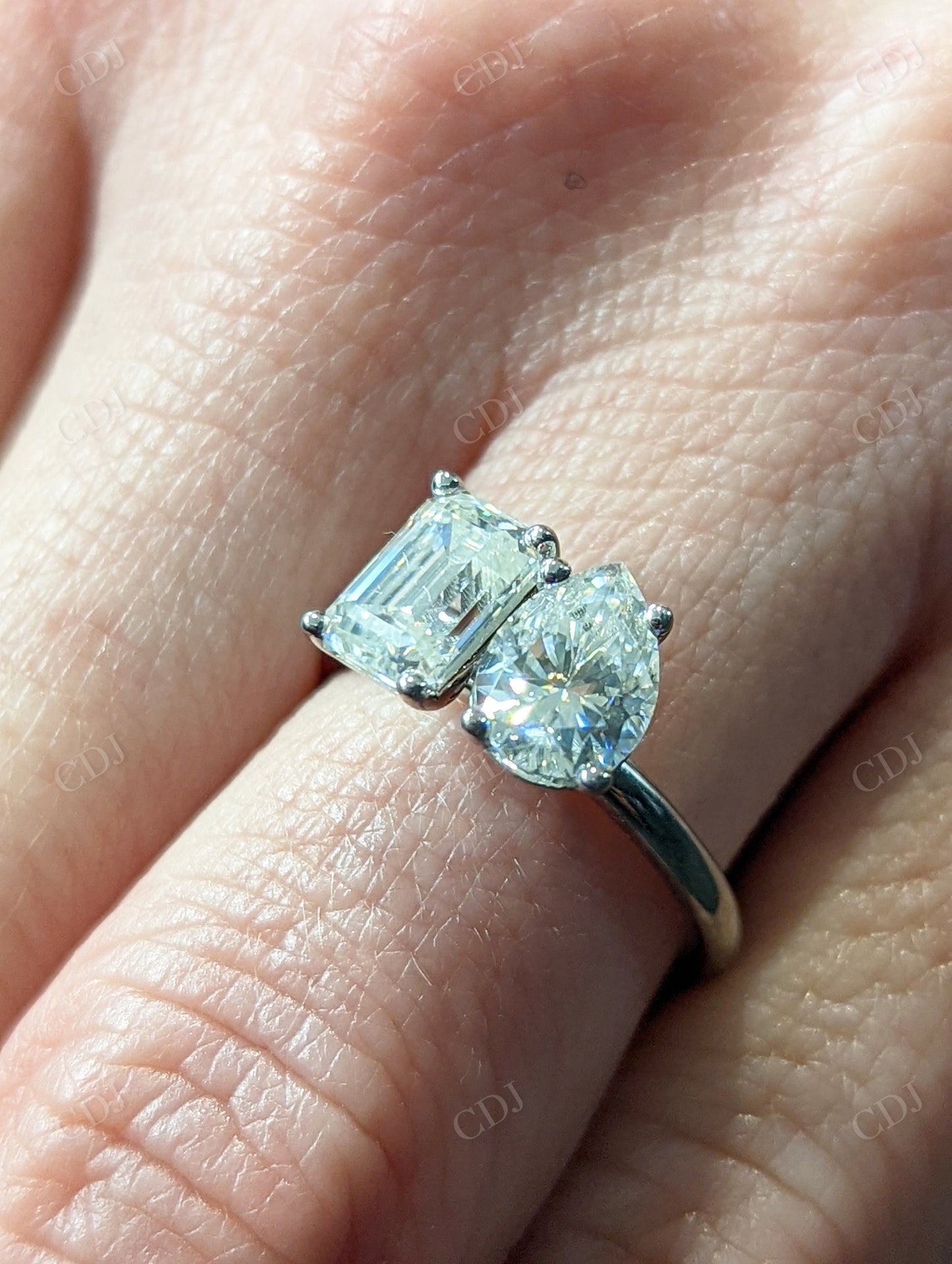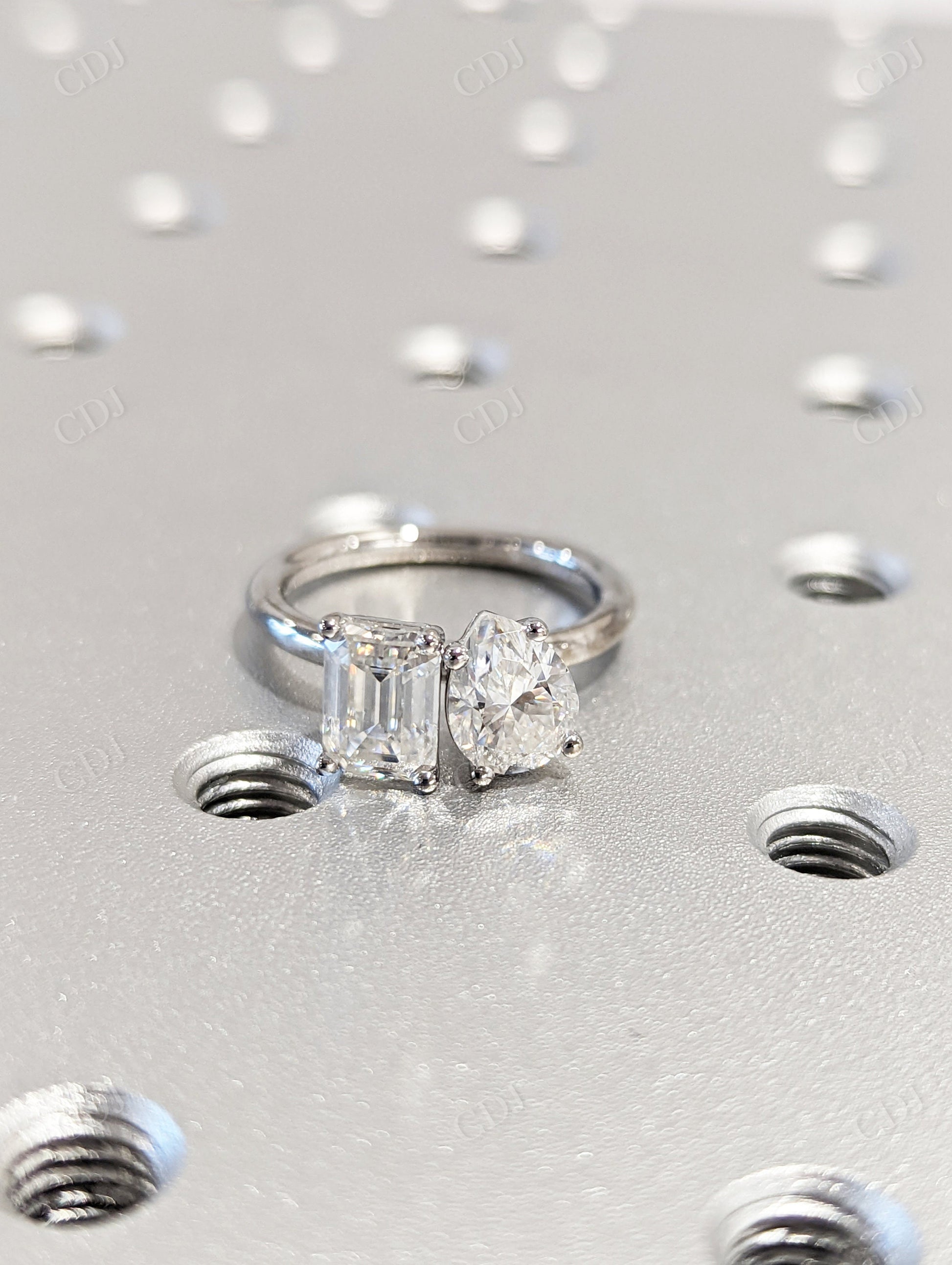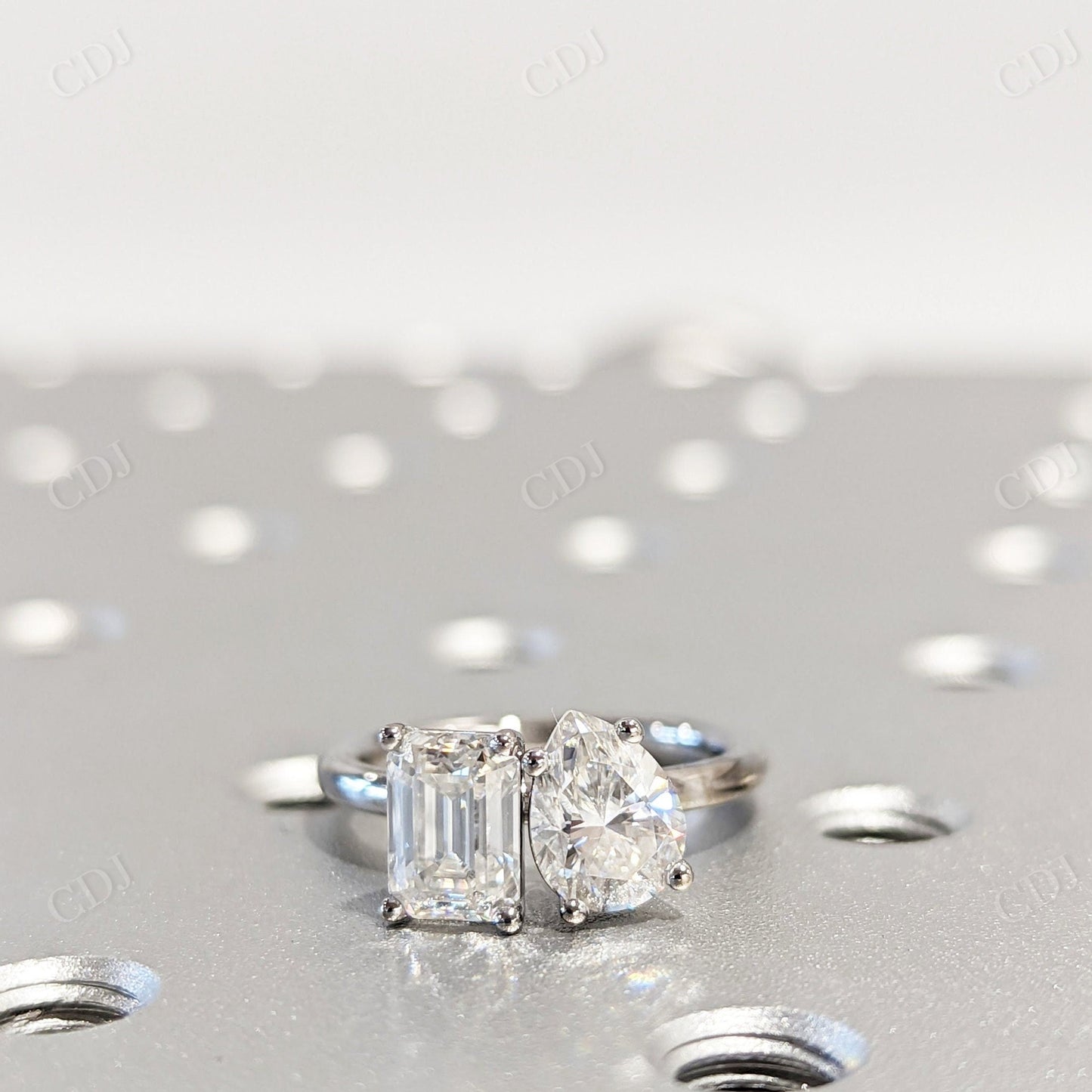 • Stone Combination: One pear cut and one emerald cut moissanite