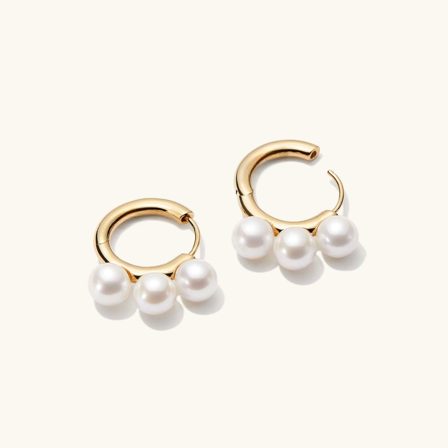 Tags: 14K gold hoop earringspearl trio earringsUnique Bold Pearl Trio 14K Solid Gold Hoops Earring