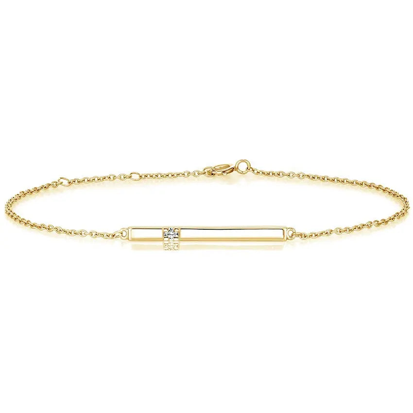 Elevate your jewelry collection with the sleek and sophisticated Unique Diamond Bar Bracelet. This contemporary piece features a slender horizontal bar adorned with sparkling diamonds, offering a fresh twist on classic elegance. Perfect for layering or wearing alone, it’s a versatile accessory that adds subtle sparkle to any outfit.