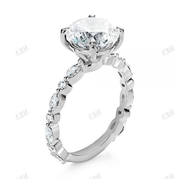• Side Stones: Marquise and round-cut moissanite accents