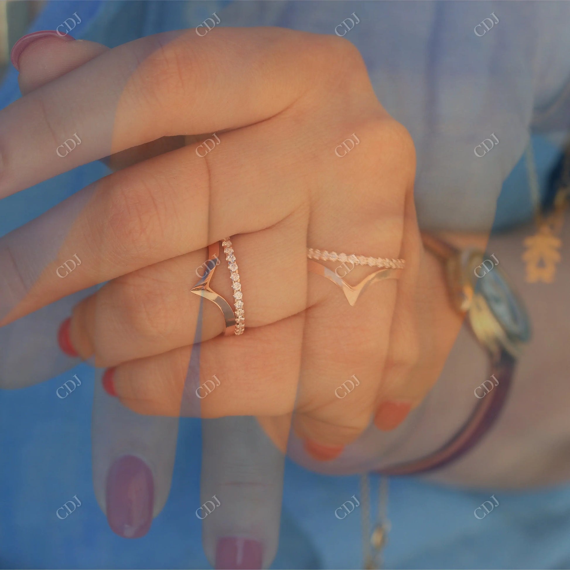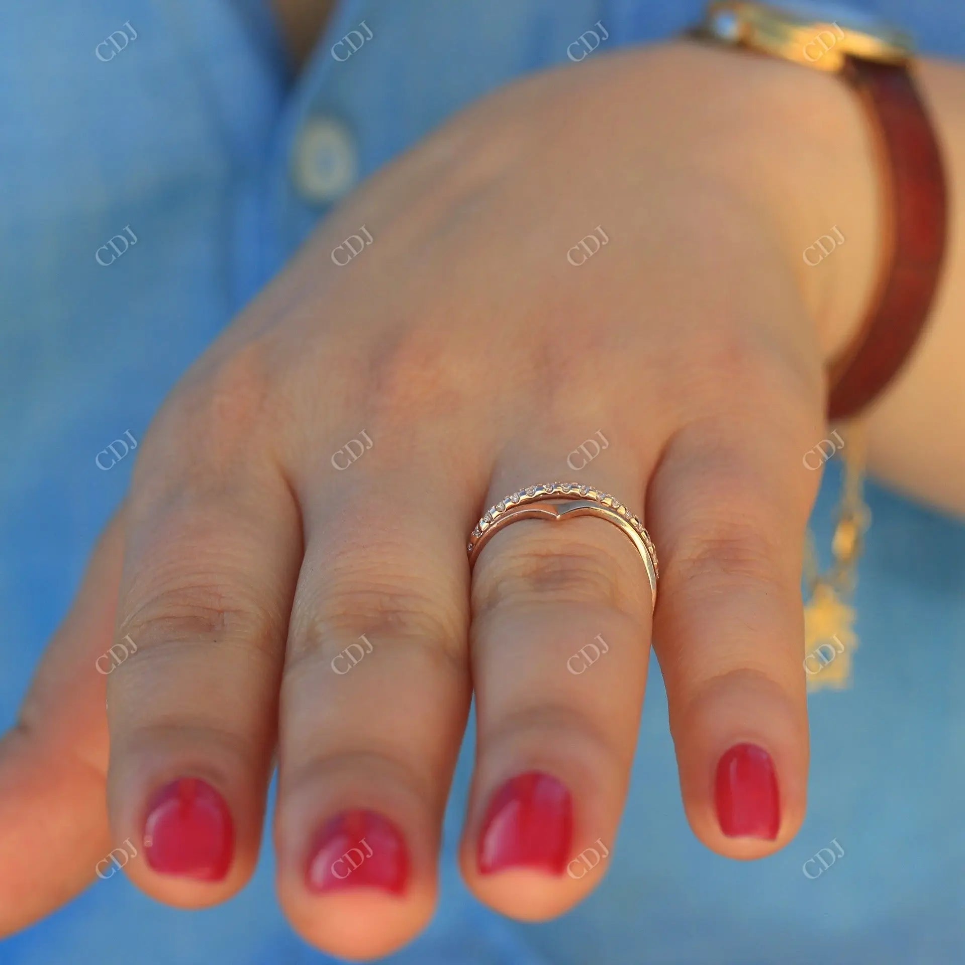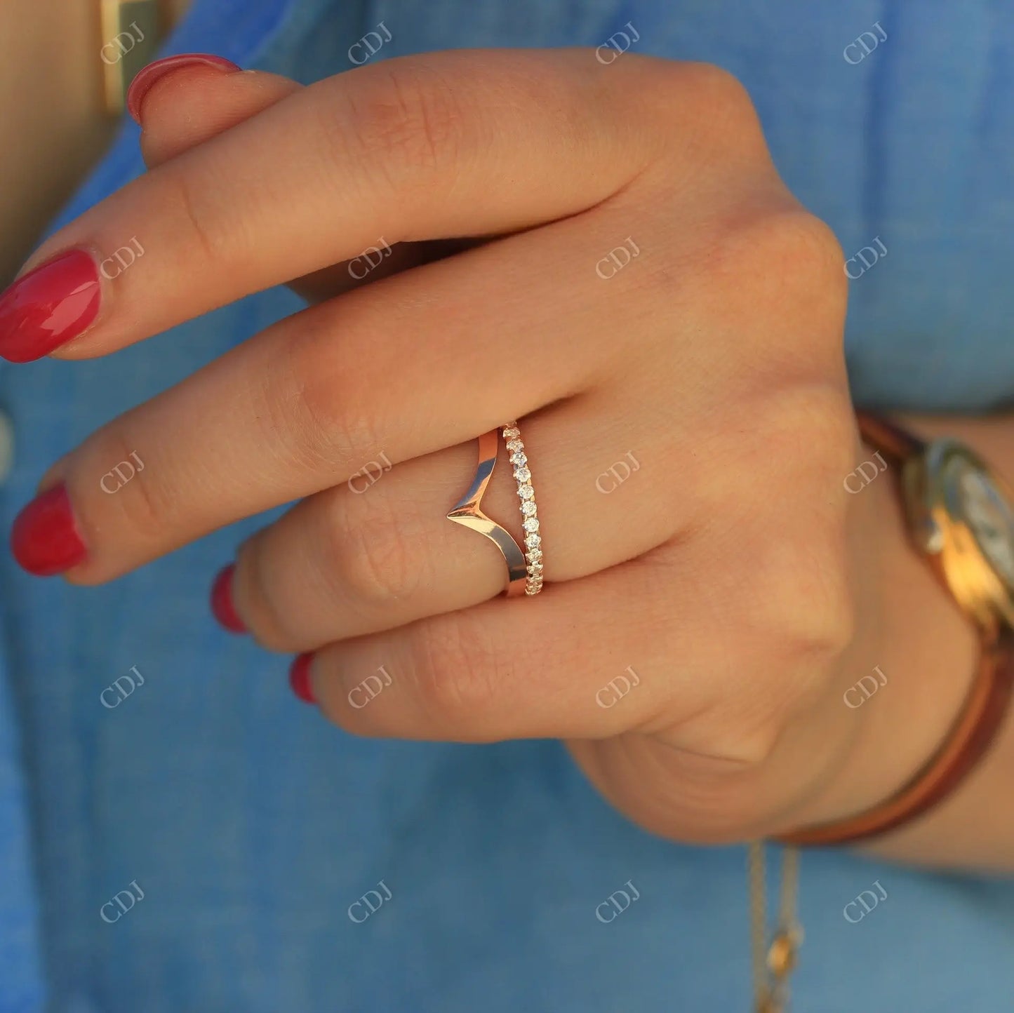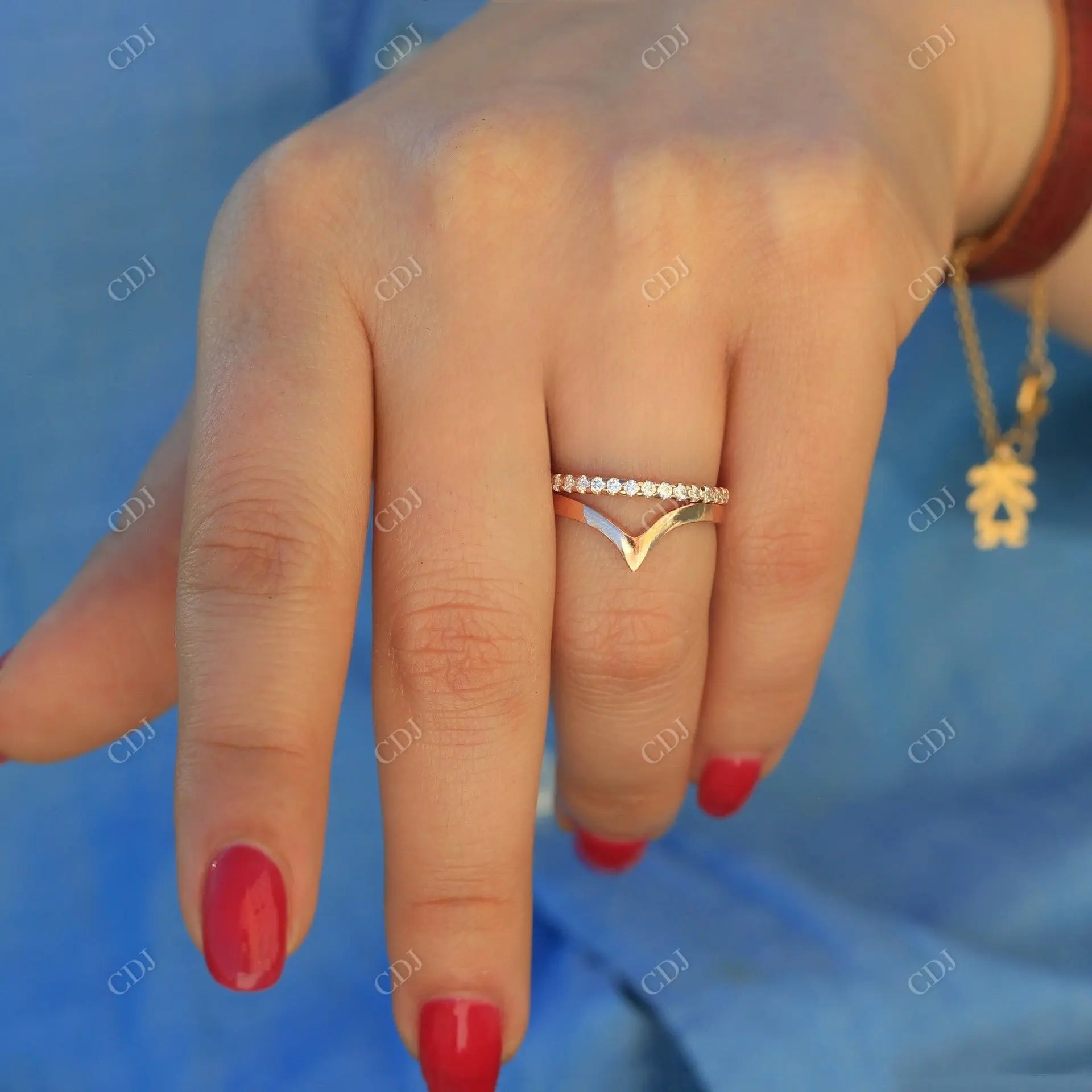 • The V-shaped contour hugs your engagement ring or adds an eye-catching twist when worn solo.