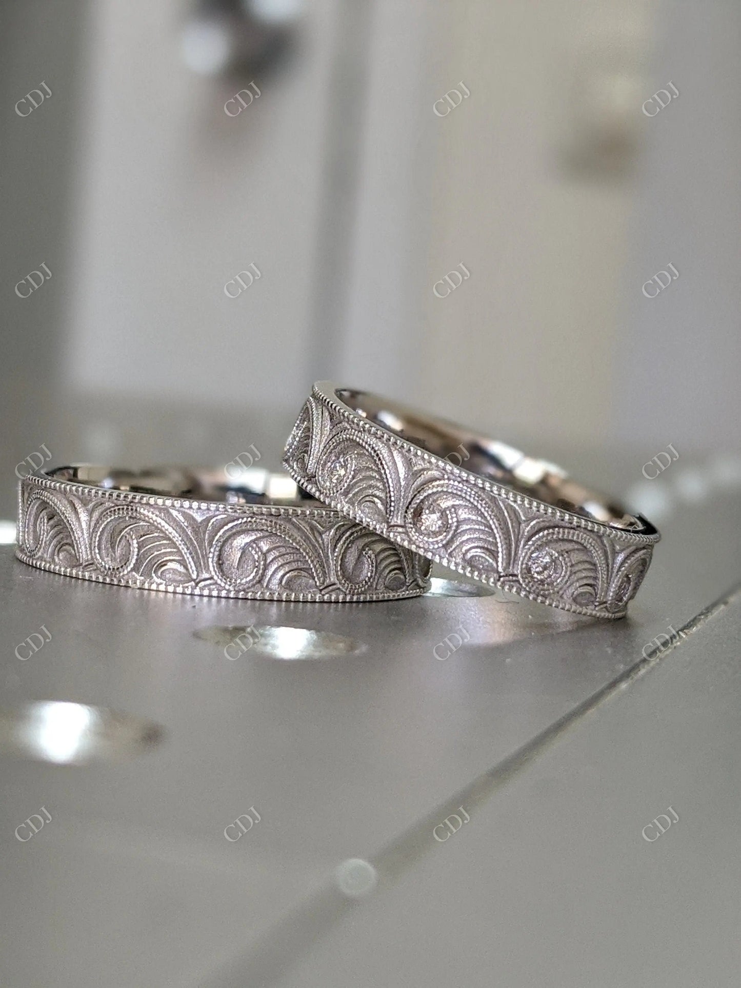 đź’Ť Timeless Charm: Vintage Style Milgrain Engraved Lab Grown Wedding Band