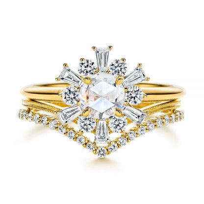 The V-shaped design is inspired by vintage styles, creating a sleek, flattering fit against any engagement ring, especially those with round, oval, or pear-shaped stones. The moissanite stones are ethically lab-grown, offering the brilliance and fire of diamonds but at a fraction of the price. This makes the Vintage V Shaped Moissanite Wedding Band a perfect option for couples who want luxury without compromising their values.