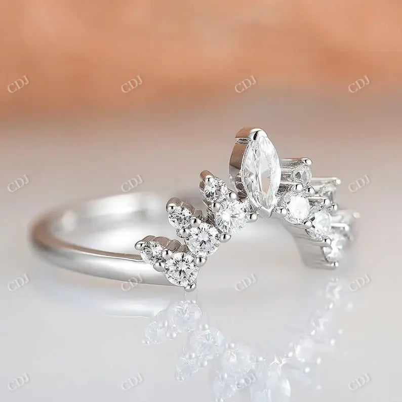 A curved wedding band creates a perfect fit around engagement rings with larger center stones or low-profile settings. It adds style and sparkle while maintaining a clean, cohesive stack.