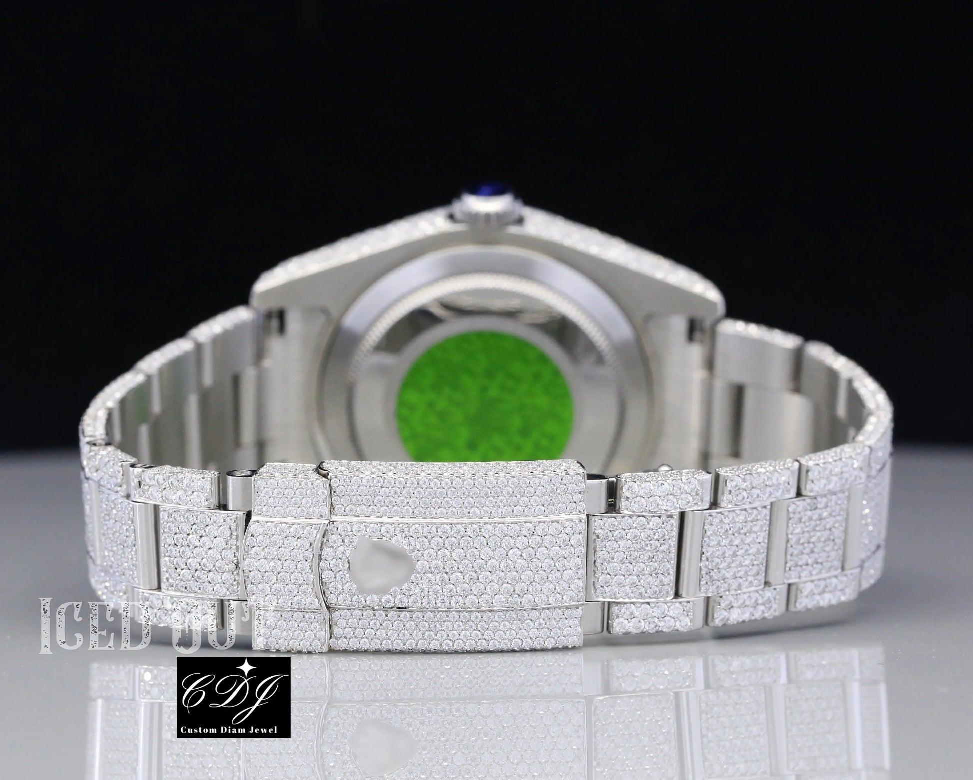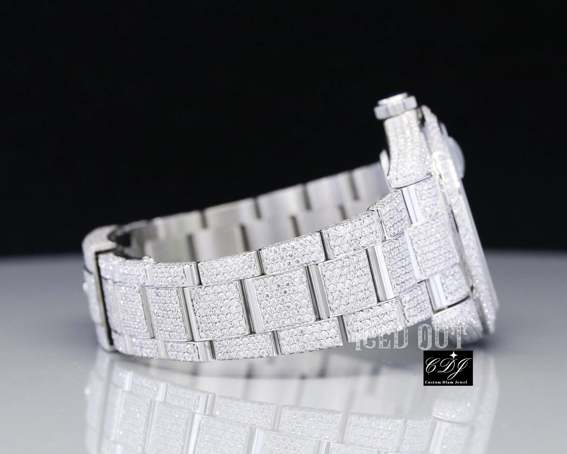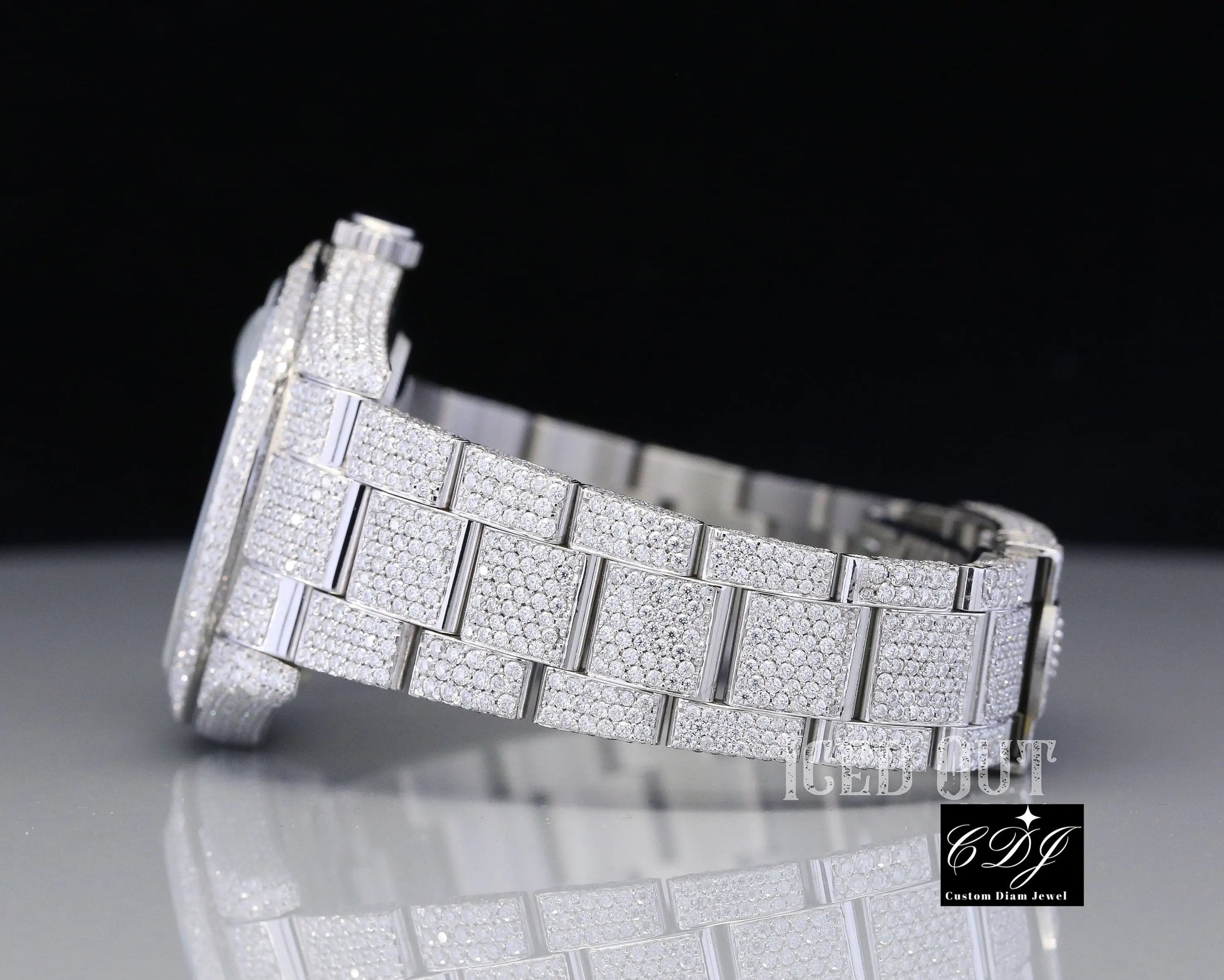 • Fully iced out with high-quality natural diamonds covering the bezel, dial, and bracelet