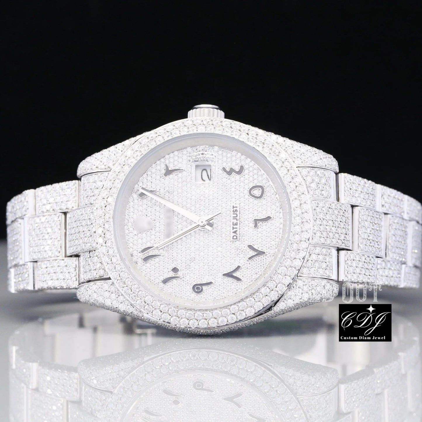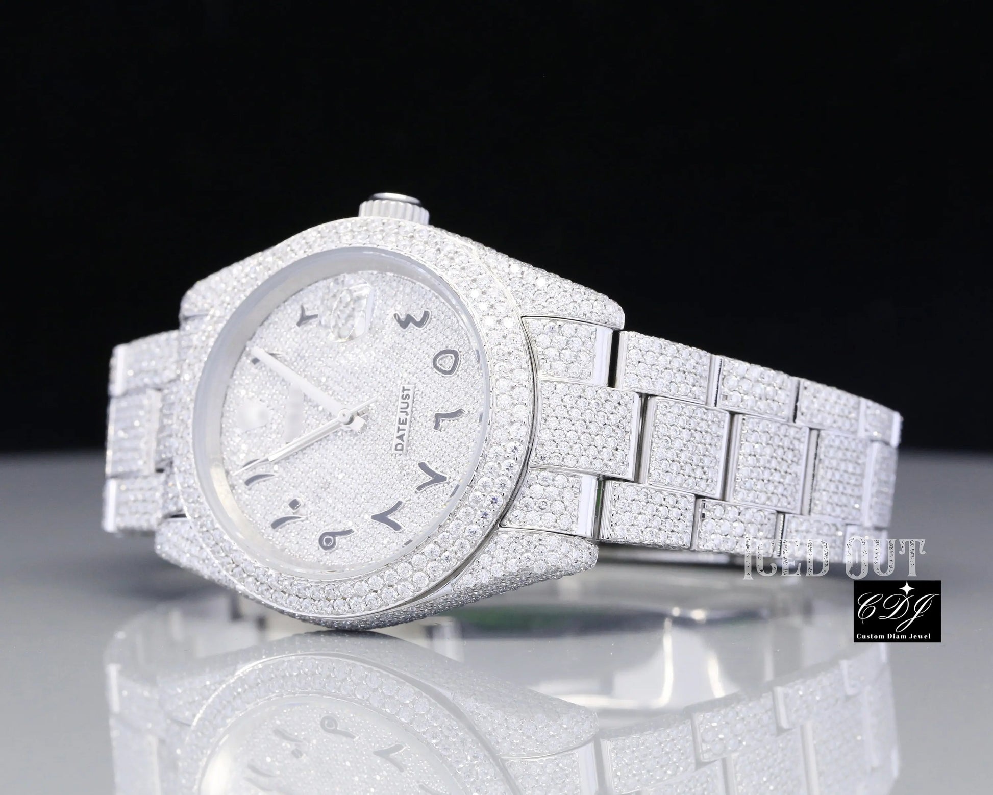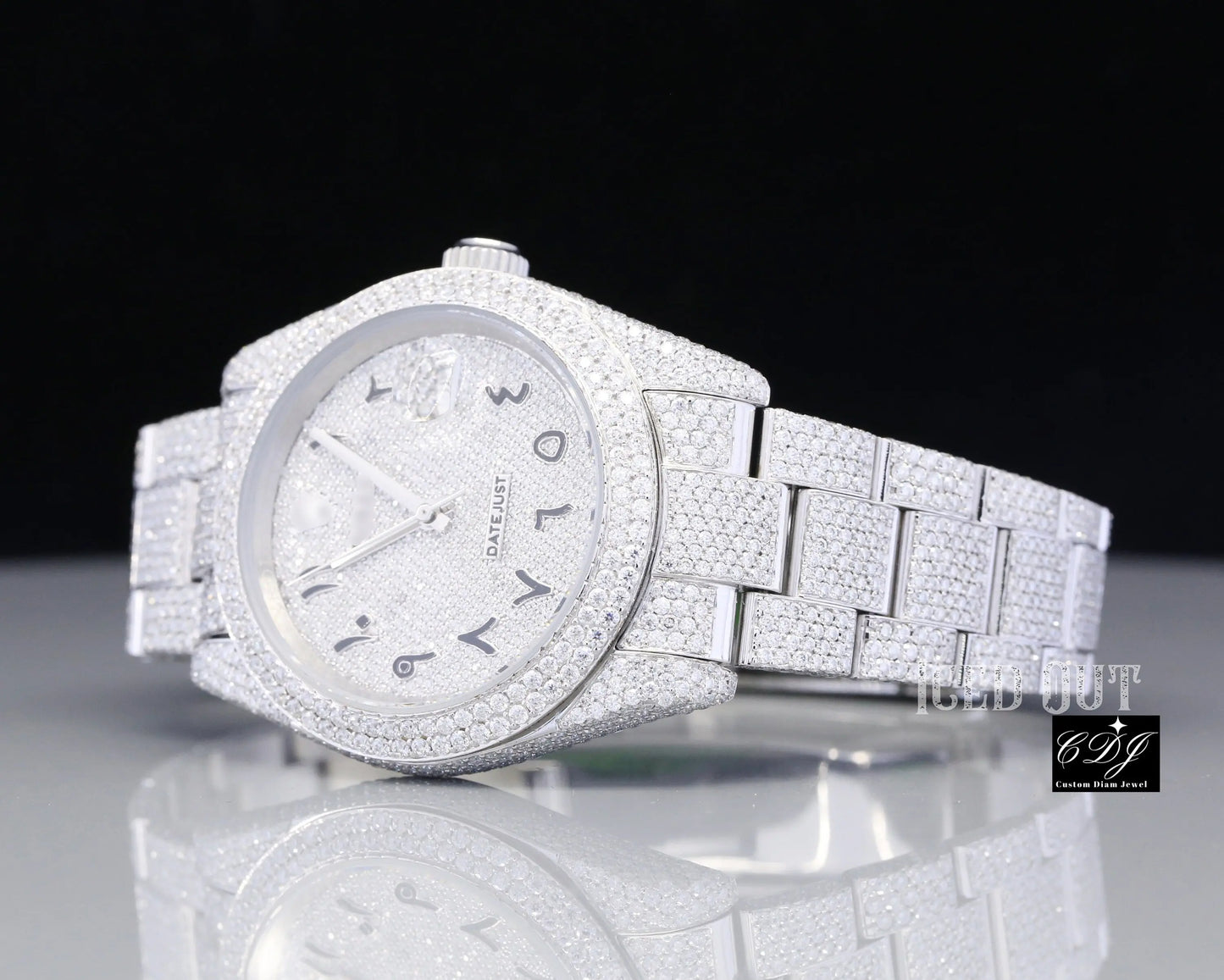 • Fully iced out with high-quality natural diamonds covering the bezel, dial, and bracelet
