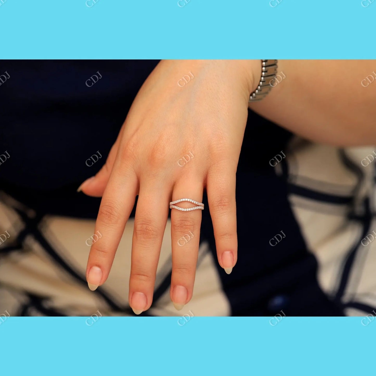 The subtle curve of this wedding band allows it to nestle beautifully against your engagement ring, creating a harmonious and seamless look. This design ensures comfort while enhancing the sparkle and allure of your entire ring set.