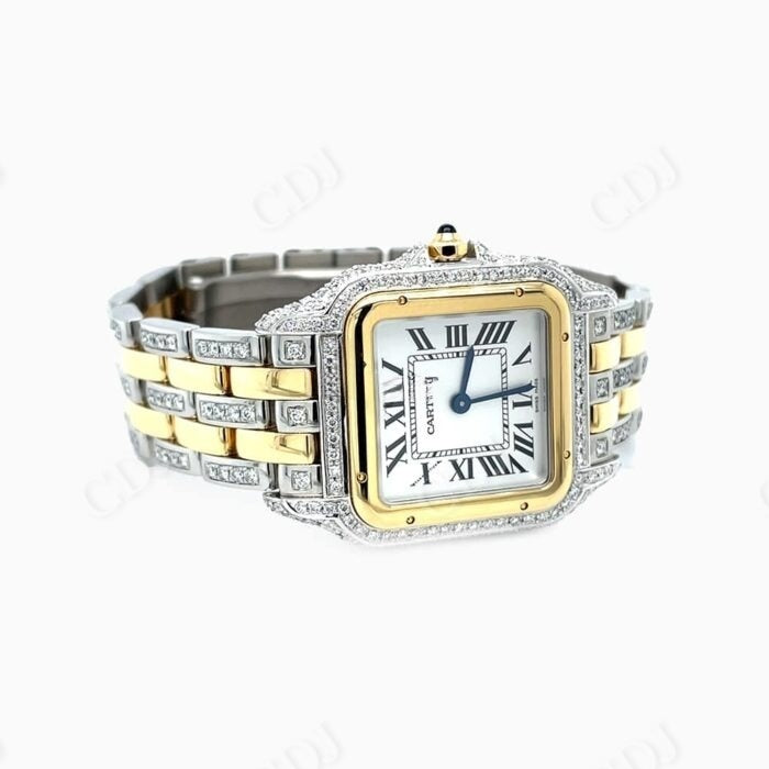 Yellow White Cartier Custom Moissanite Studded Watch
